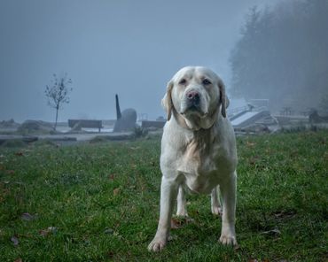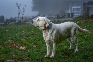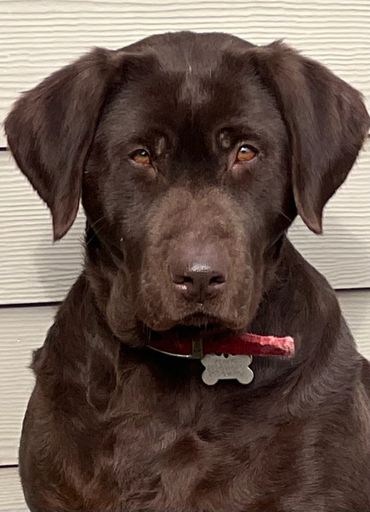 Lucy is a super sweet female. She is the lightest shade of yellow you can get in a Lab which is White. She is a nice blocky English/Bench style Lab. Weighs in at 80 lbs. Her Hips are rated Good and Elbows Normal.